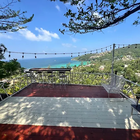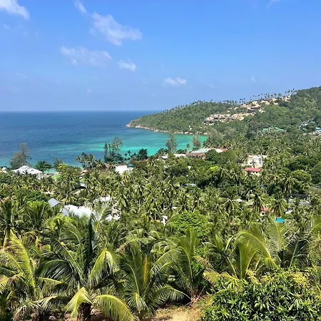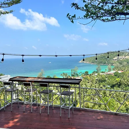 Situada a unos 25 minutos a pie de la Playa Secreta, la villa Seaview Love Nest Ko Pha Ngan invita a los huéspedes a relajarse en una terraza.